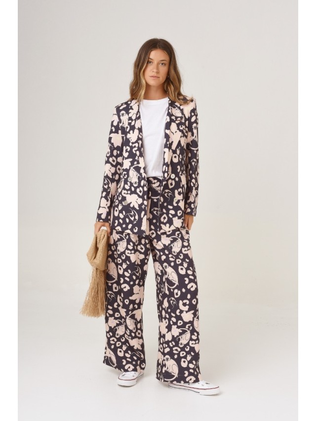Blazer cruzado con 4 botones en el frente y bolsillos con ojal con tapa. En las mangas posee una abertura en la parte inferior y tajo de 15 cm en la espalda.
