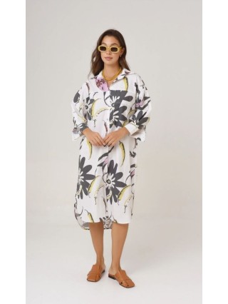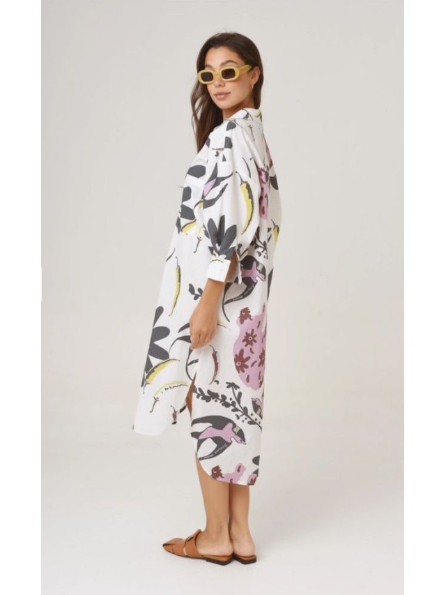 Camisero largo por debajo de las rodillas, con botones a tono. Su bajo es redondeado y la espalda es mas larga que el delantero.