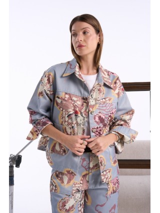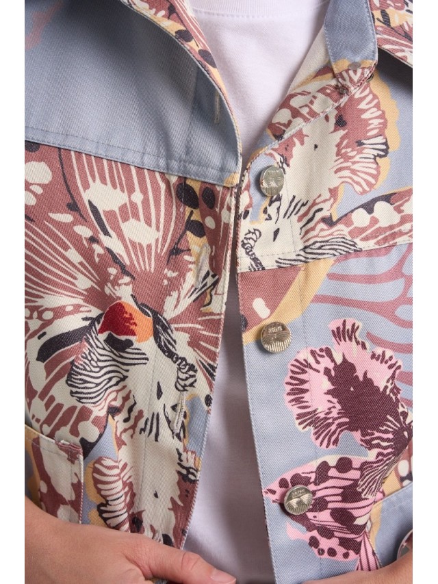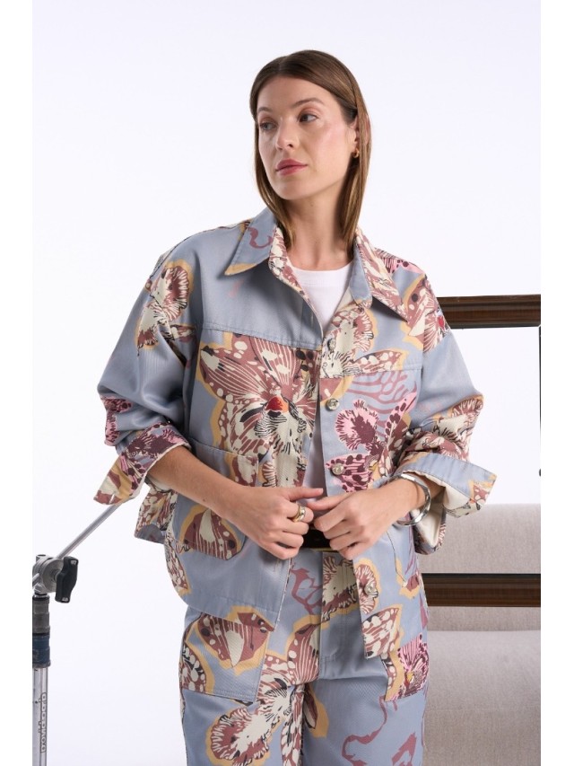 Chaqueta confeccionada en sarga, con dos bolsillos plaque en el delantero y en la espalda posee un canesú con pinza.
