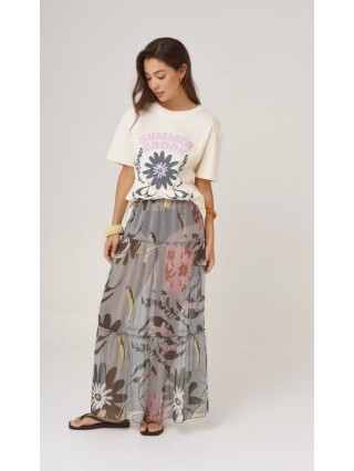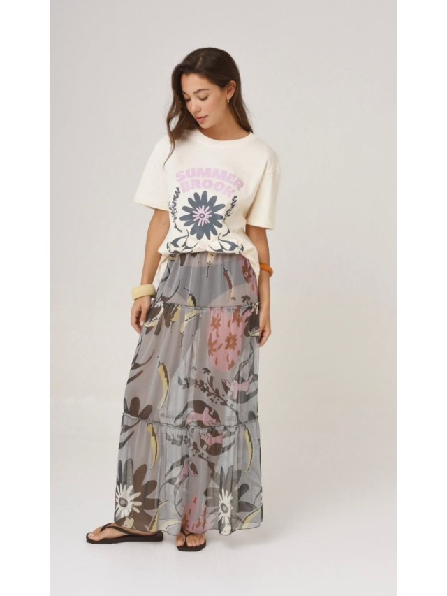 Falda larga de microtul, con elastico en la cintura y dos volados. Tela: Microtul
