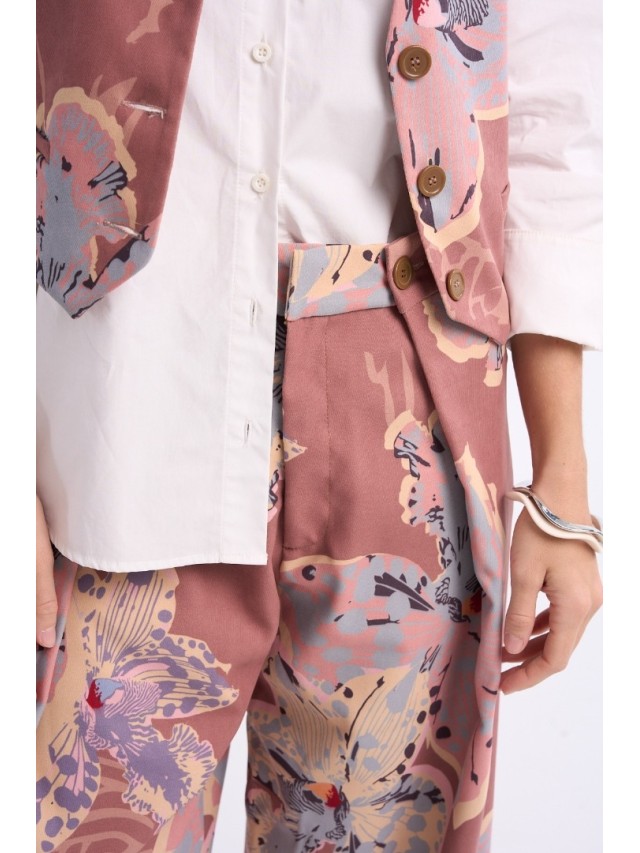 Pantalón sastrero confeccionado en sarga gamuzada, de fit holgado, En cintura posee botones para regular el calce generando una tabla tipo pliegue delantero. Lleva bolsillo ojal en espalda, apertura con cierre, gancho y botón de segurirdad.
