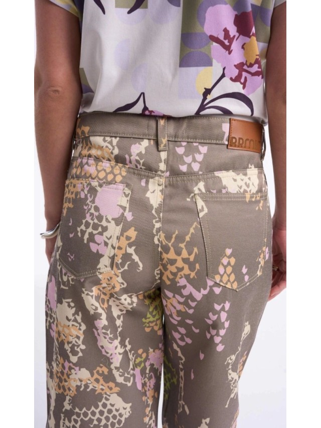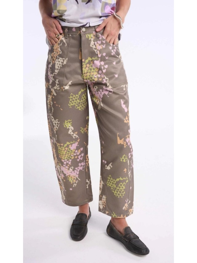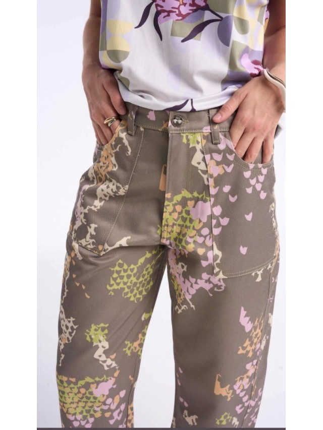 Pantalón confeccionado en sarga con corte jeanero bombe, posee bolsillos plaque en el delantero. Tiro medio.