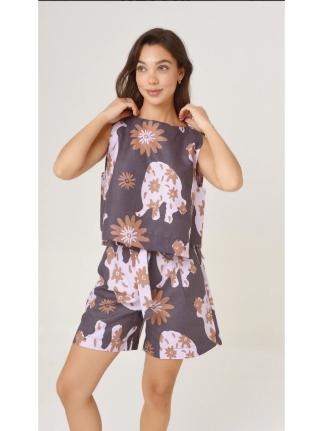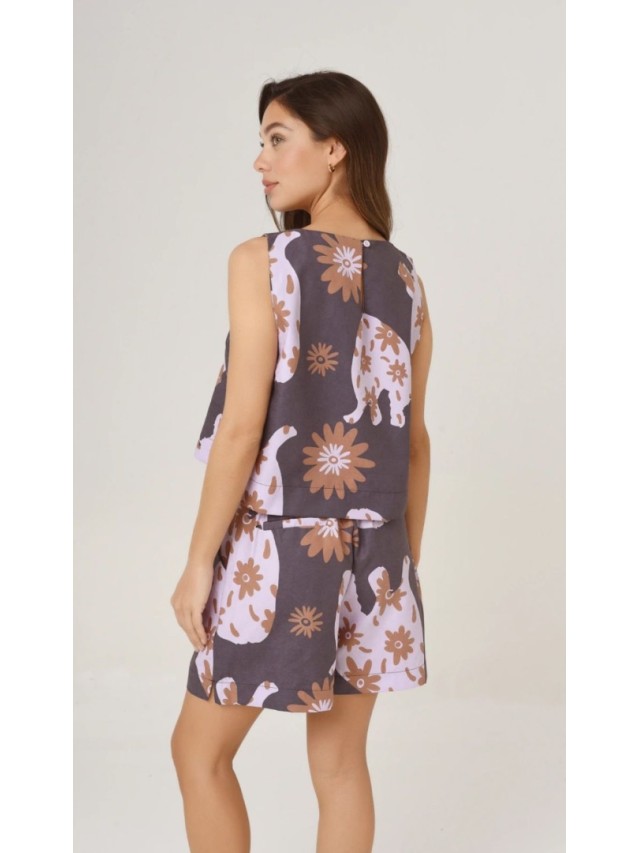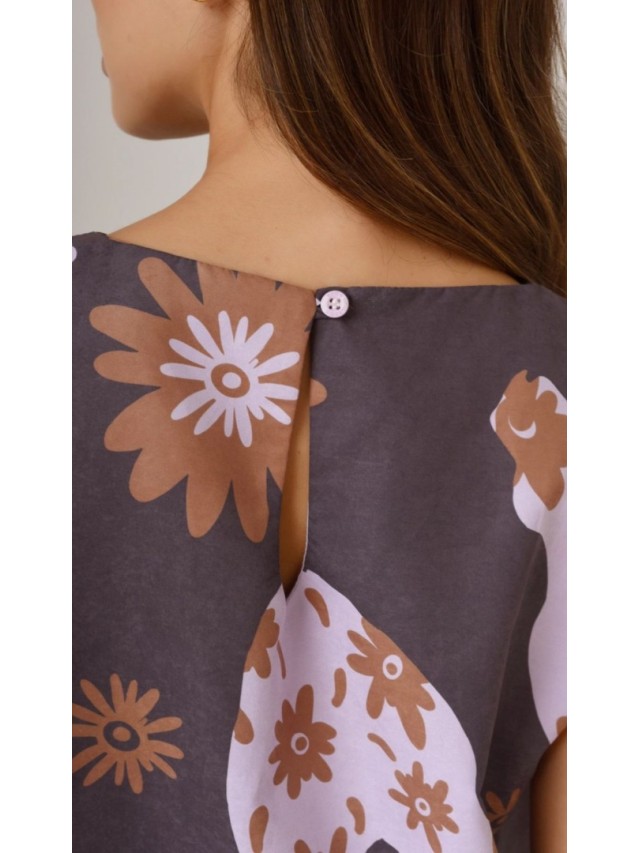 Top de cuello redondo y corte recto a la primer cadera.Contiene un recorte lateral dandole amplitud a la prenda.